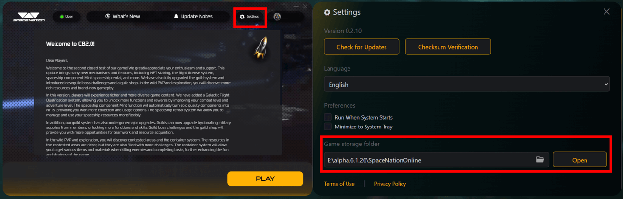 - Login to Launcher, click on 'Settings' to access the configuration page. From there, select your preferred language and set your game installation path.
